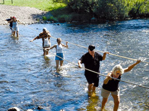 Barfußpfad in Bad Sobernheim Der Barfußpfad ist ein sehr beliebtes Ausflugsziel im Sommer. Der Gang durch das Lehmstampfbecken ist eine angenehme Abkühlung für heiße Füße. Der Weg über unterschiedliche Materialien wie Rindenmulch, Holz, Steine und Sand gleicht einer Reflexzonenmassage. Die Überquerung der Nahe an der Furt sowie die 40 m lange Hängebrücke am Ende des Pfades zählen definitiv zu den Höhepunkten der Wanderung. Entfernung: ca. 20 km |